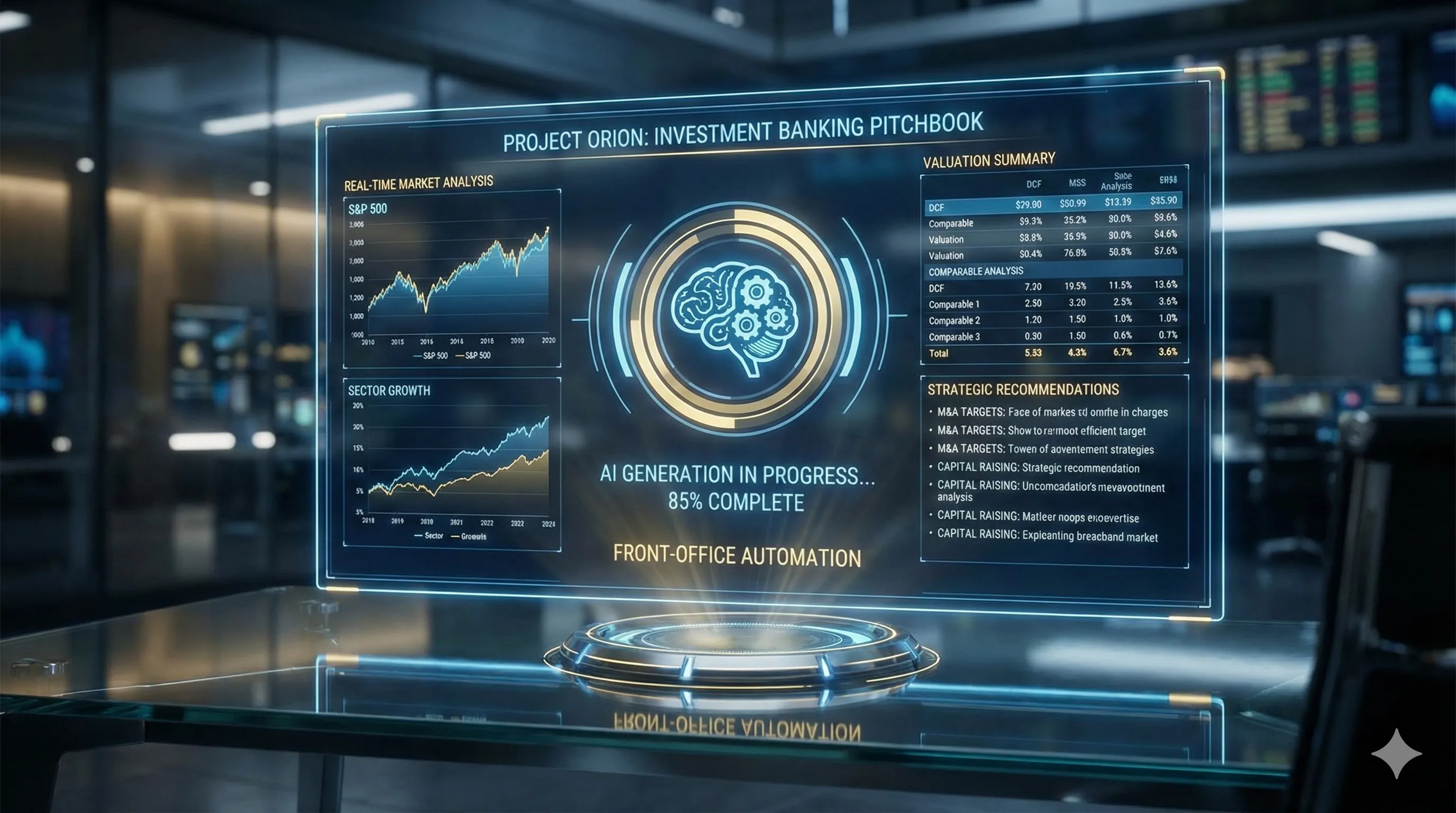 시장 데이터를 분석해 투자 제안서(피치북) 초안을 작성하고, M&A 딜의 잠재적 시너지를 분석하며, 고객의 투자 성향에 맞는 맞춤형 포트폴리오를 관리하는 등의 업무에 활용될 수 있습니다.