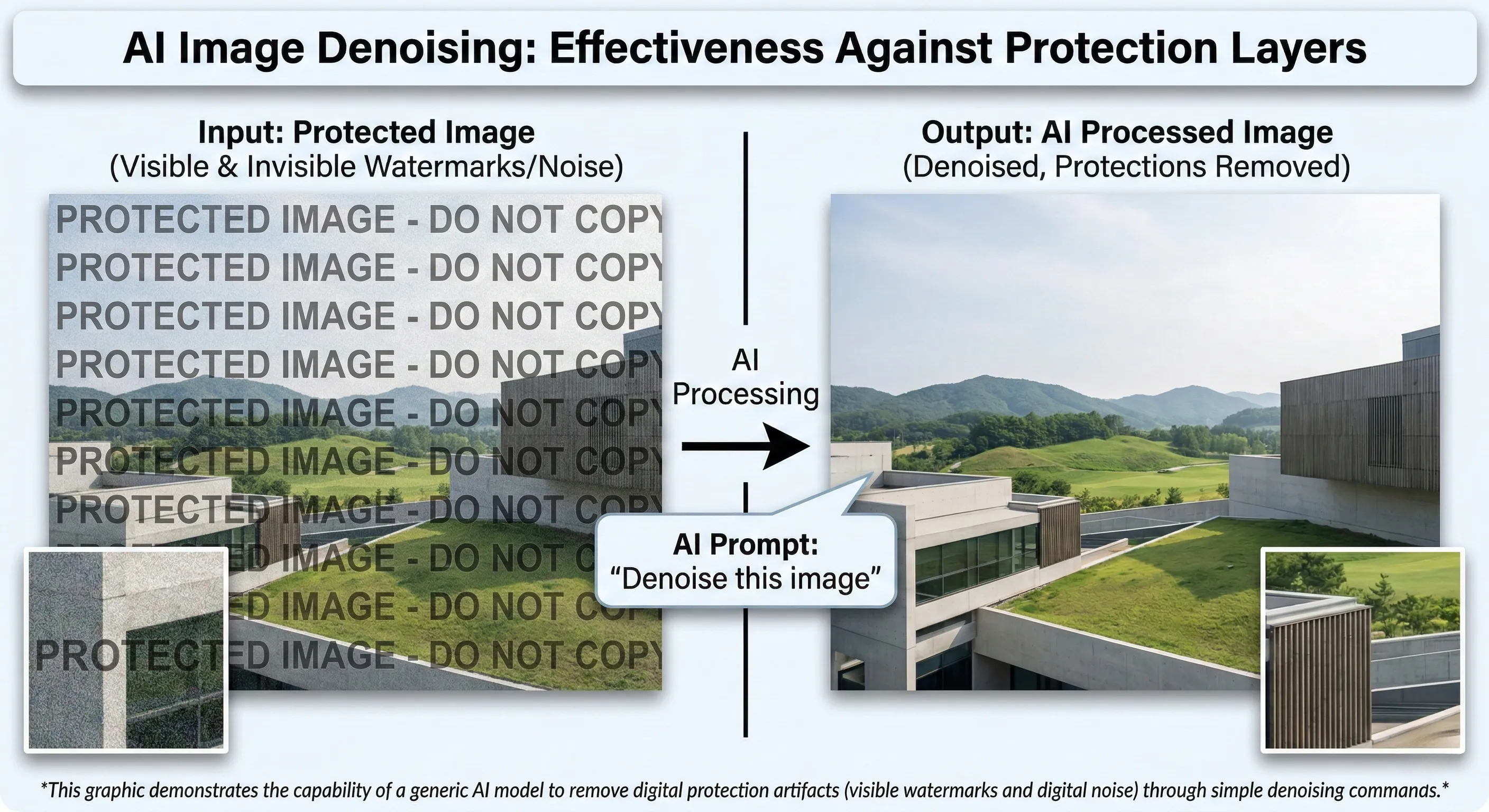 1. 범용 생성 AI의 역습: 단순 '노이즈 제거' 프롬프트가 이미지 보호 기술을 무력화하다