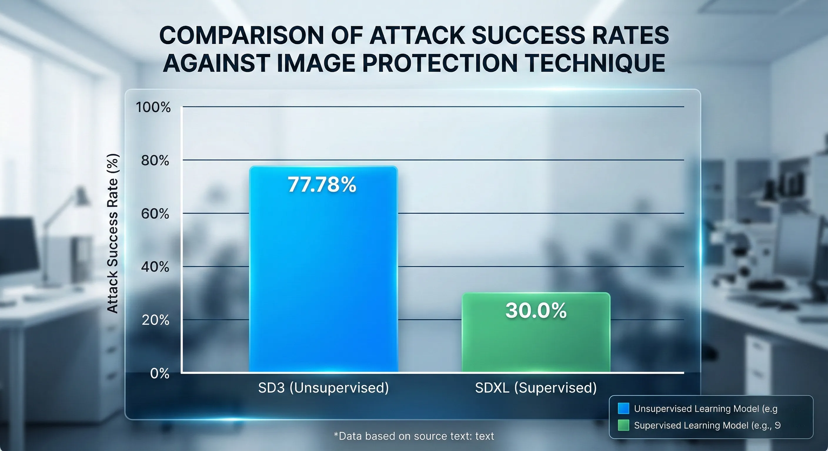 비지도 학습으로 훈련된 SD3 모델은 공격 성공률 77.78%를 기록하며, 공격에 맞게 지도 학습된 SDXL 모델의 69.66%보다 현저히 높은 성능을 보였습니다.