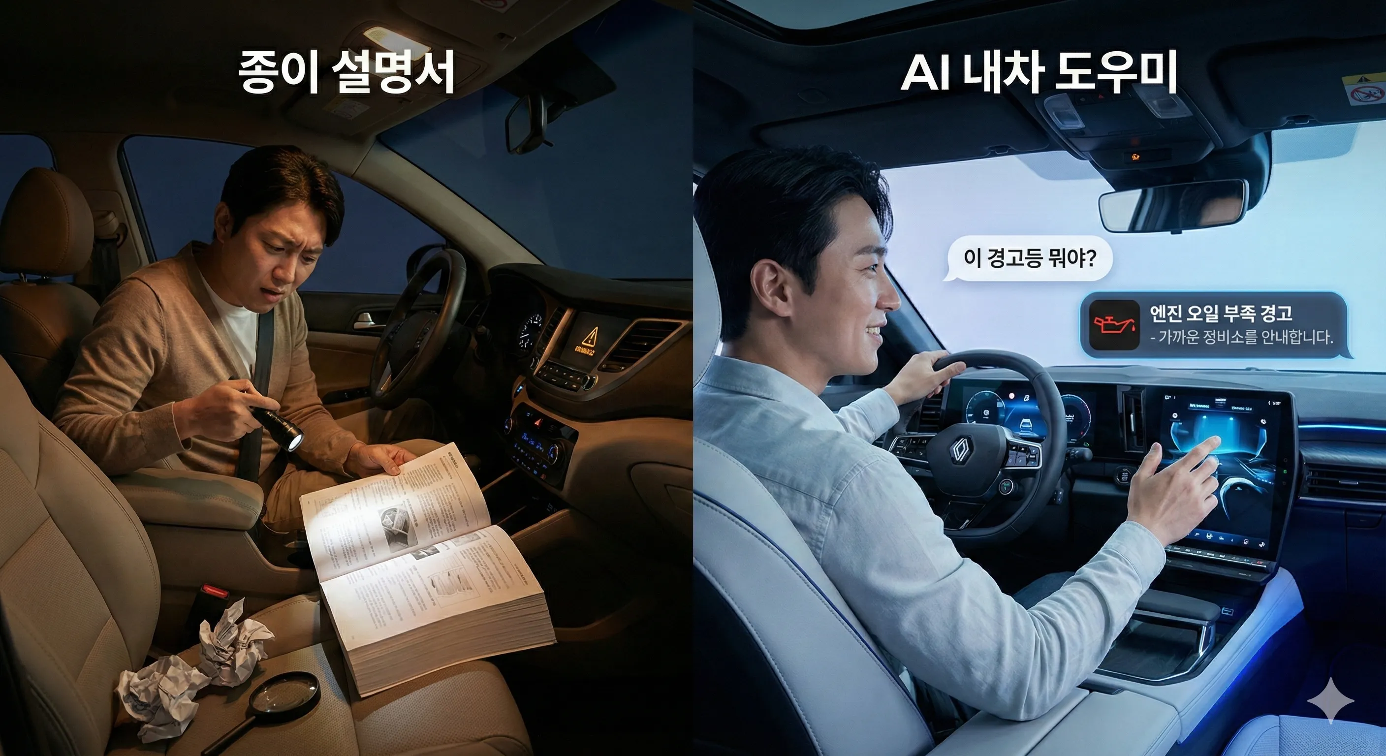 계기판에 생소한 경고등이 떴을 때, 차를 세우고 두꺼운 책자를 뒤지거나 스마트폰으로 검색할 필요 없이 "이 경고등 뭐야?"라고 묻기만 하면 됩니다.