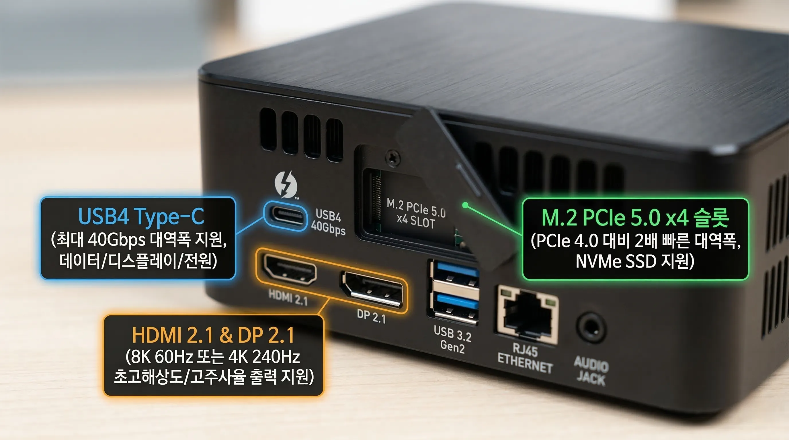 실무에 적용해본 유저들은 주로 PCIe 5.0 스토리지를 통한 대용량 파일 전송 속도와 USB4 포트를 활용한 단일 케이블 도킹 솔루션에서 큰 효용을 느낍니다.