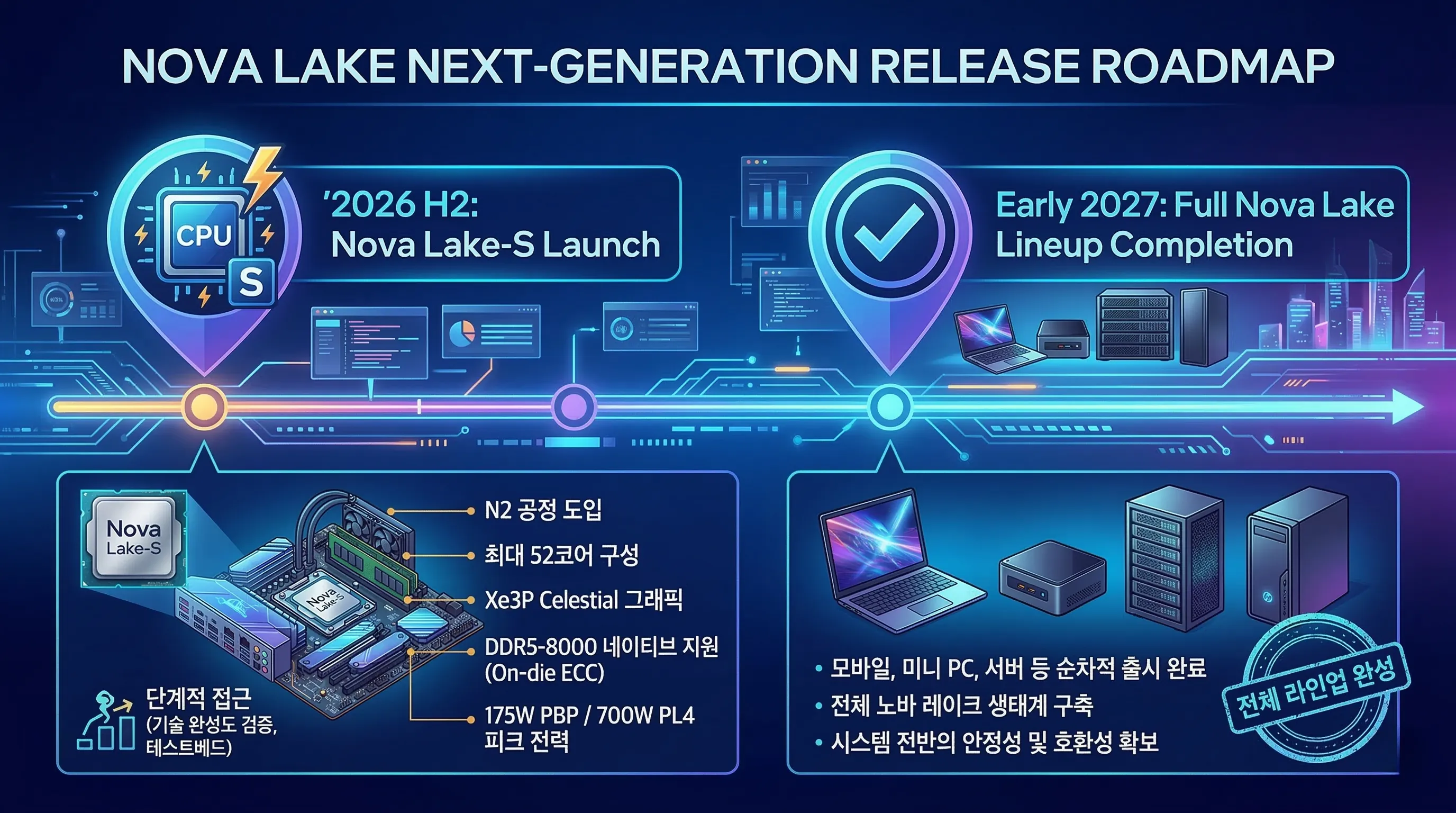 인텔의 차세대 프로세서인 노바 레이크(Nova Lake)는 2026년 하반기부터 시장에 모습을 드러낼 예정입니다.