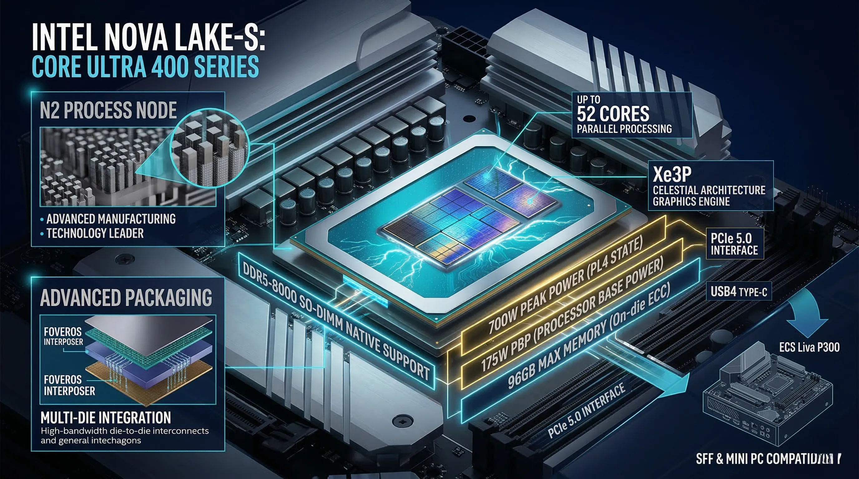이 강력한 프로세서의 등장은 미니 PC 생태계에도 큰 변화를 가져올 것으로 예상되는데, ECS Liva P300은 3.5리터의 초소형 폼팩터에도 불구하고 노바 레이크를 지원하며 그 가능성을 미리 보여주고 있습니다.