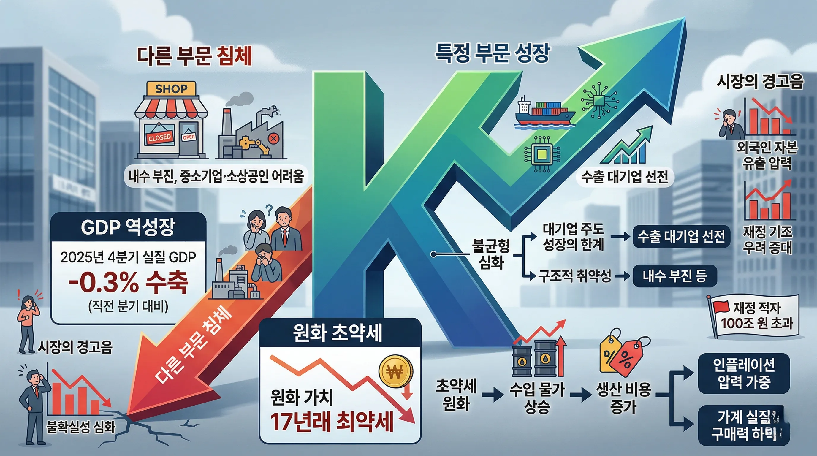 2. K자형 회복의 그늘: GDP 역성장과 17년래 최약체 원화의 이중고