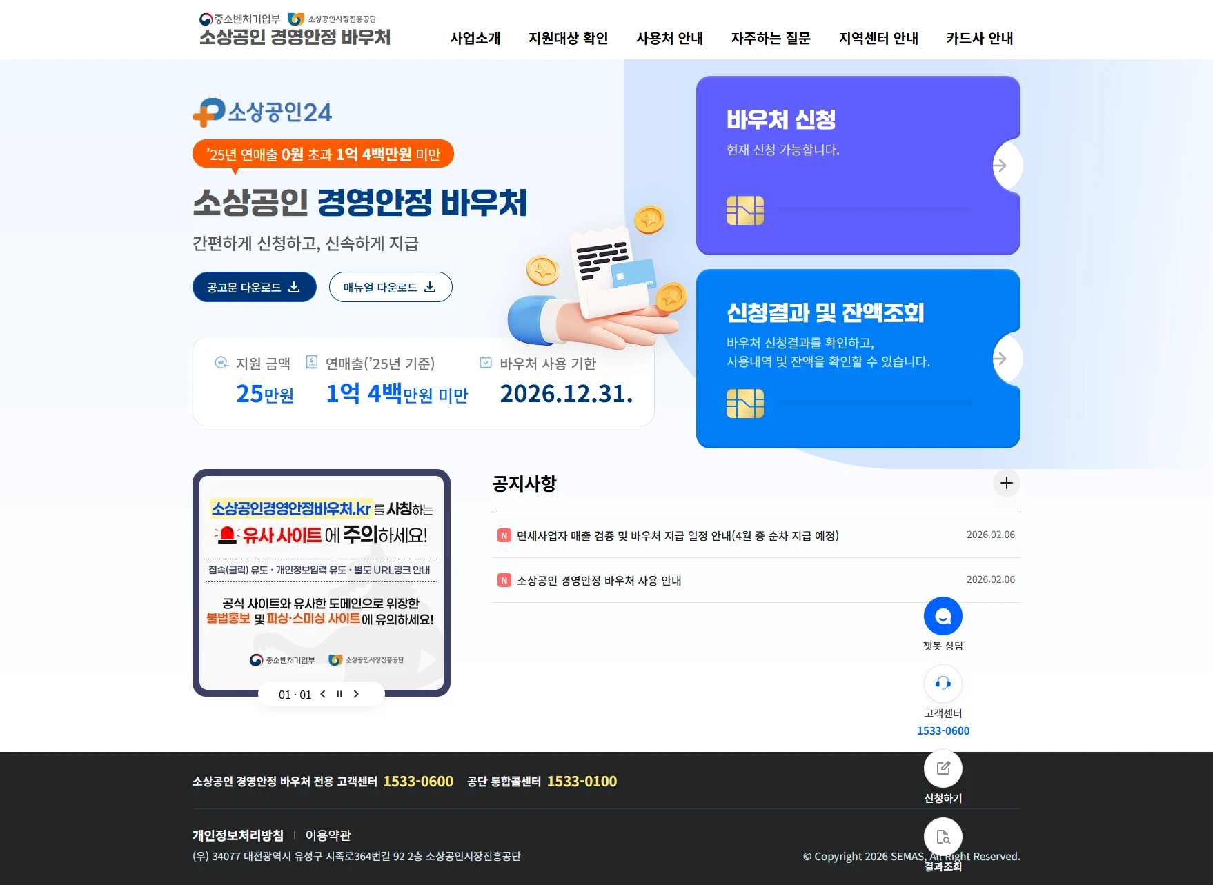 • 신청 방법: 온라인 누리집 '소상공인경영안정바우처.kr'에서 사업자번호 홀짝제에 맞춰 신청.