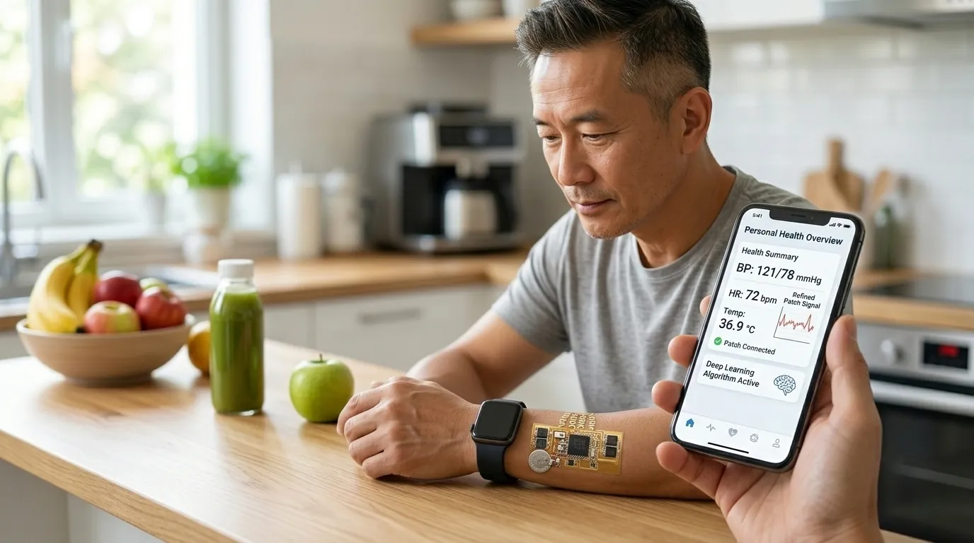 패치가 실시간으로 추적하는 정확한 혈류 역학 데이터가 기존 PPG 센서의 맥파 신호와 결합되면서 강력한 시너지를 발휘하는 것입니다.